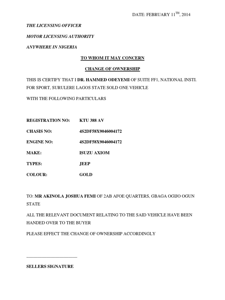 How to Transfer Car Ownership in Nigeria